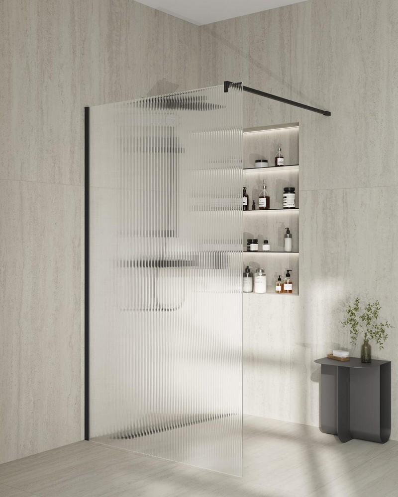 CT.100.WI.BLK.M Душевая перегородка Cristallo/Кристалло с рифленым стеклом, 100х210, матовый черный