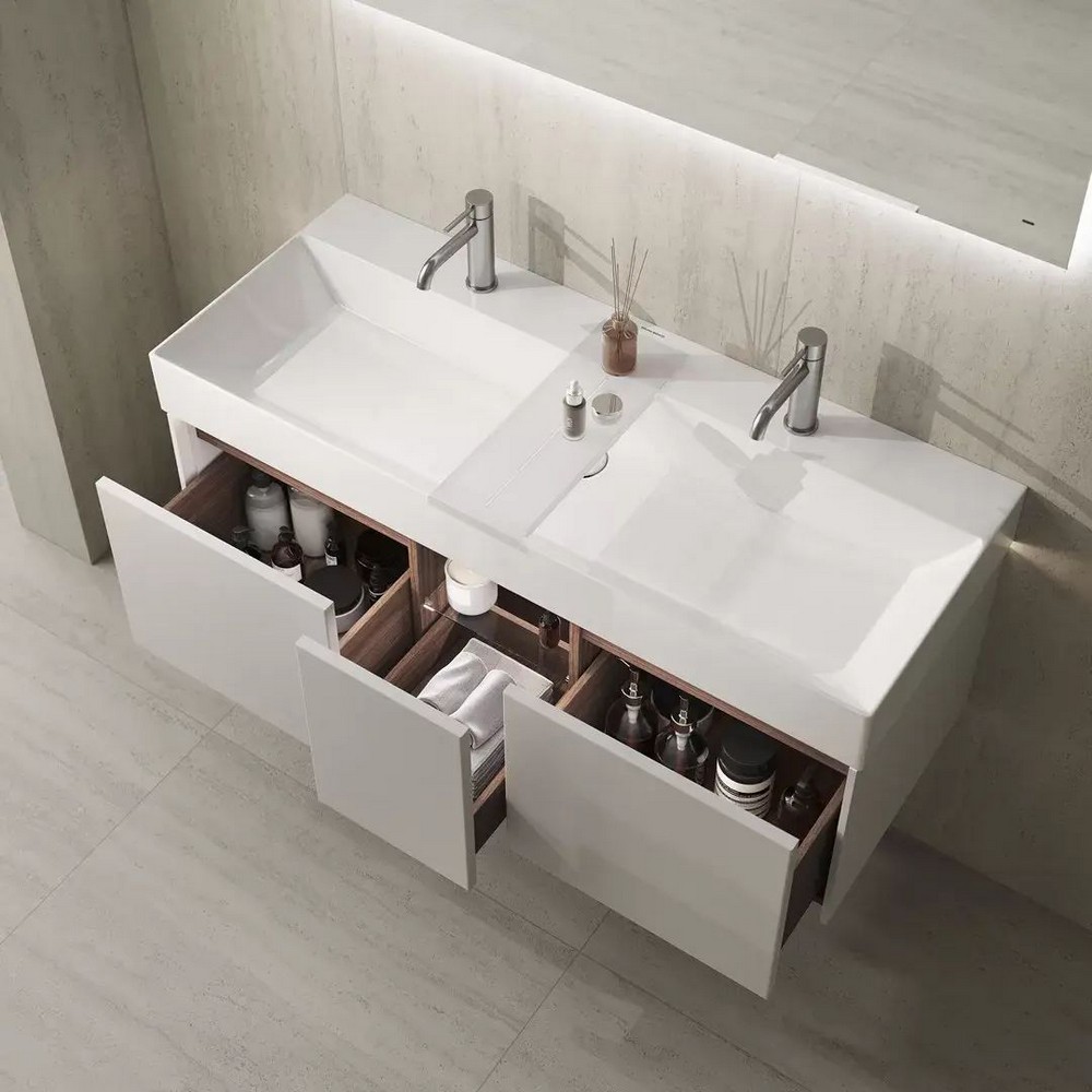 GR.wb.120.2 Раковина Grande/Гранде мебельная/подвесная 120 c двумя отвер. под смесит. с крепеж., белая глянцевая